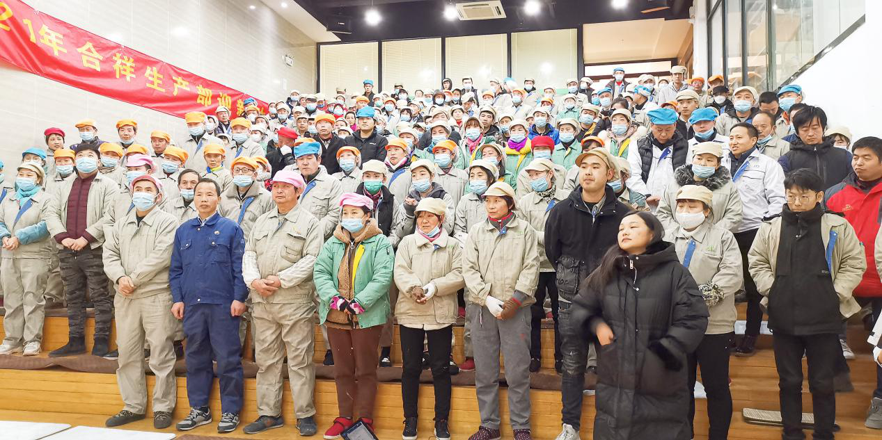 中共中央办公厅、国务院办公厅印发了《关于做好人民群众就地过年服务保障的通知》,提倡春节期间非必要不流动,就地过年。为积极响应国家和当地政府号召,地平线控股集团精心策划开展了“牛年迎春·你我陪伴”系列活动,全力做好就地过年服务保障工作,为企业员工提供相应服务,努力将保障工作做实做细做好,确保职工度过安全健康、欢乐祥和的新春佳节。 生产动员大会——喜迎牛年春节 1月12日,春节前夕,地平线控股集团旗下分公司,苏州合祥纺织科技有限公司第一时间召开生产动员大会,对政府“留相过年”的若干政策做出相关说明,并鼓励员工们以厂为家,留厂过年。